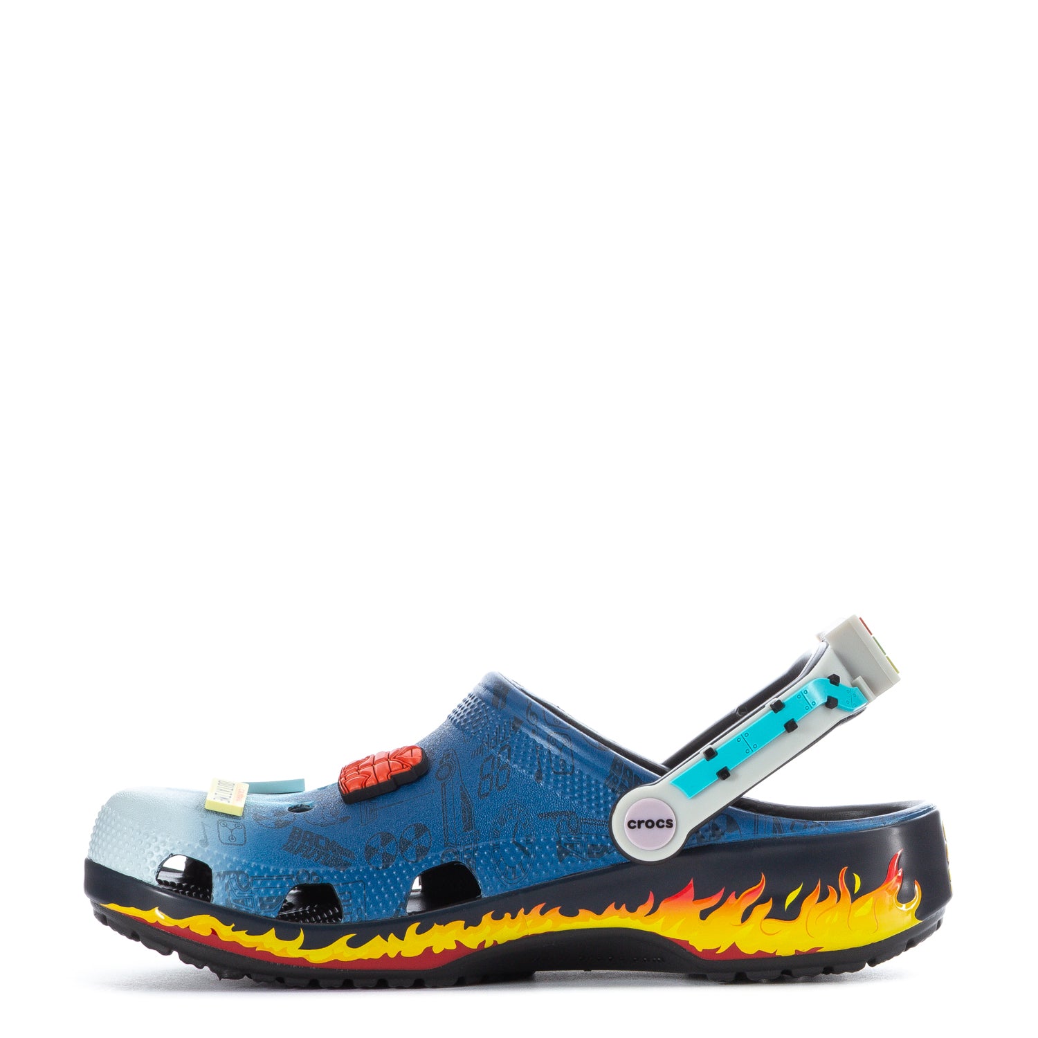 Celebrate the 40th Anniversary of Back to the Future in style! These nostalgic Classic Clogs feature time-splitting lightning bolts and flame-covered outsoles, decked out with Back to the Future inspired Jibbitz™ charms. The backstrap is equipped with the iconic Time Circuit and Flux Capacitor* seen on the back of the Time Machine. You’ll want to grab these timeless classics before the clock runs out. *Time travel not guaranteed.
