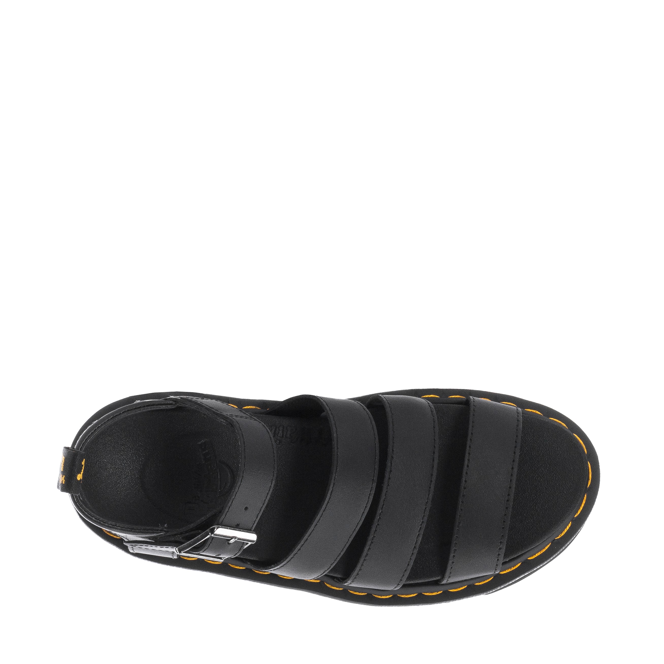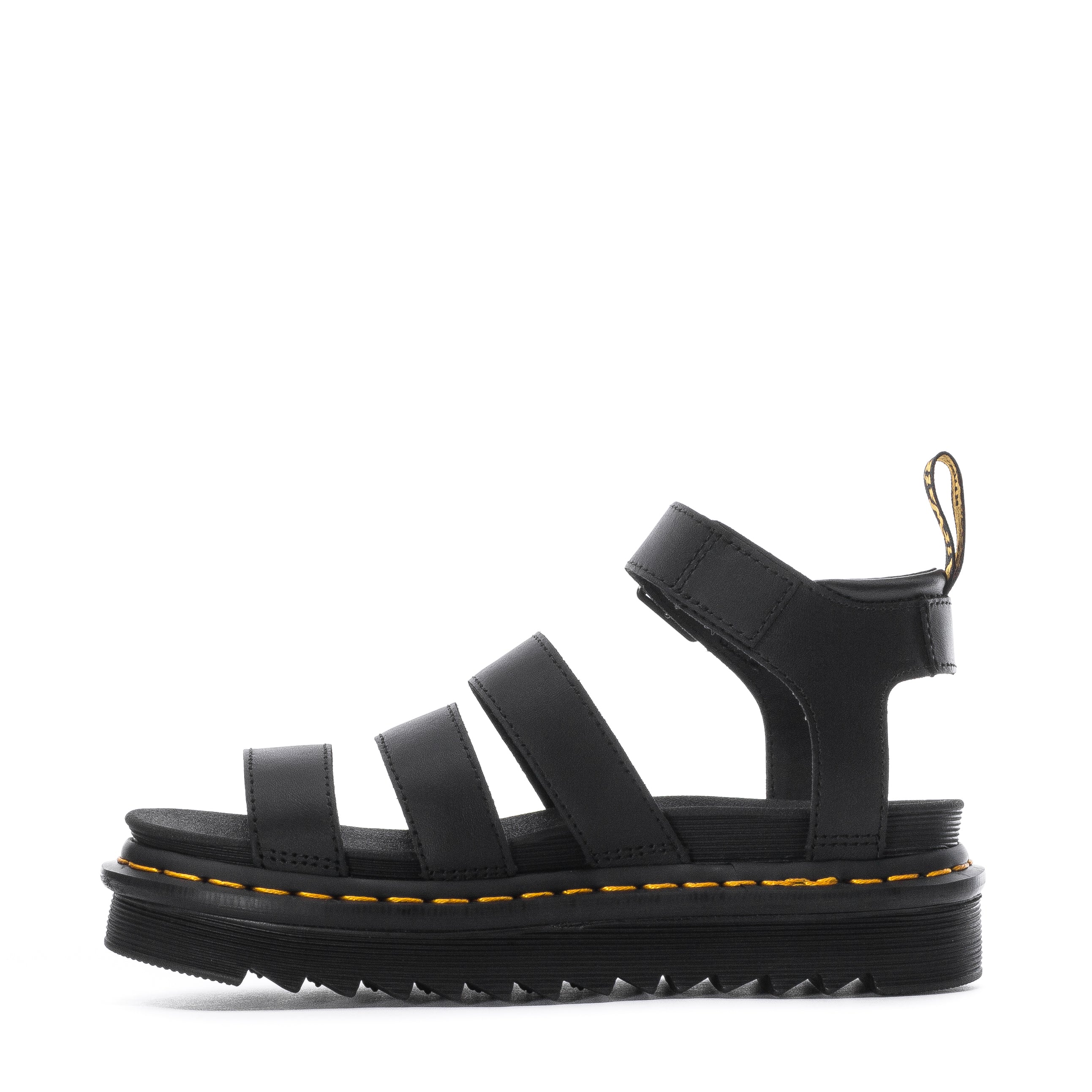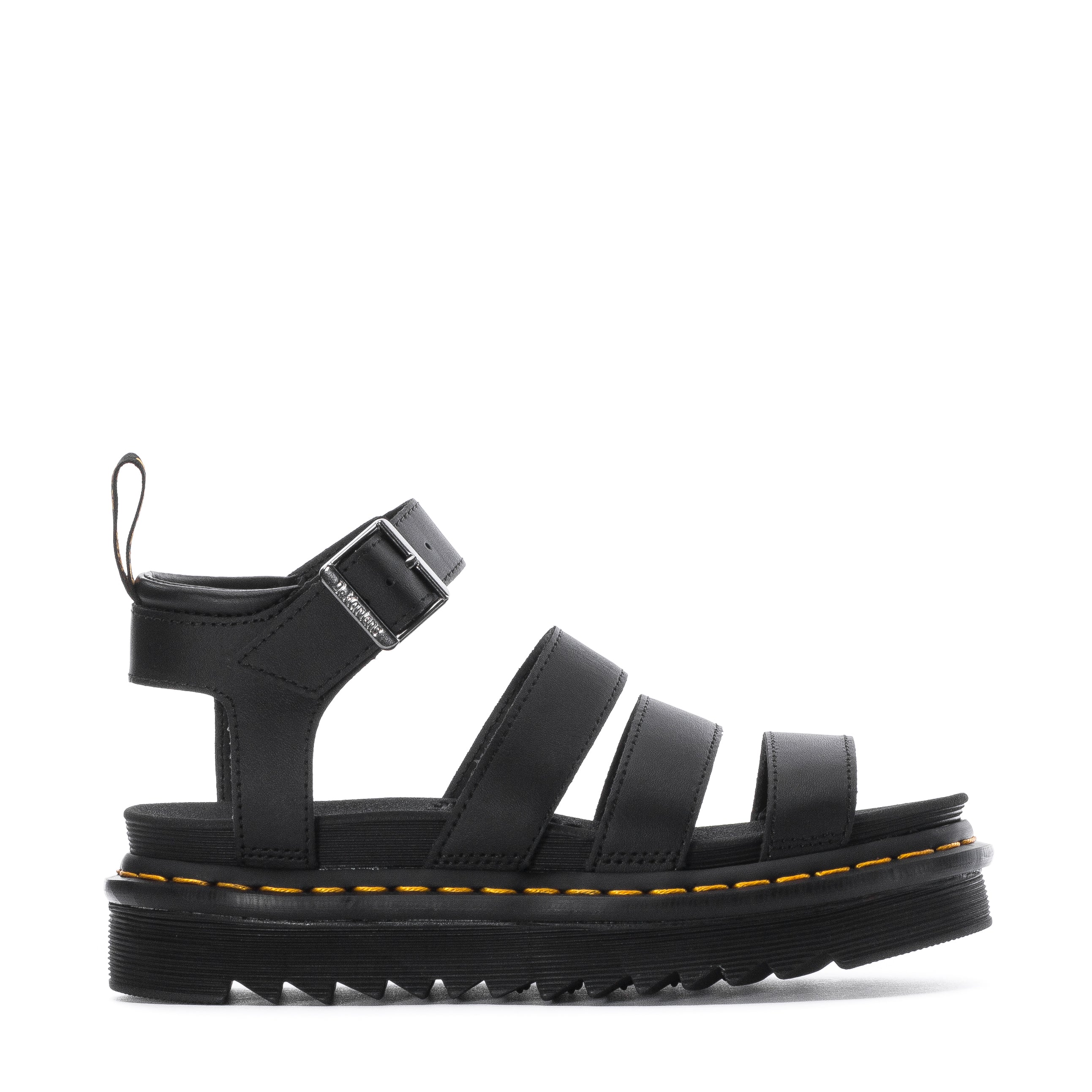 The Blaire — a Docs take on a laidback slide. Decked out with branded horseshoe buckles in a bold 3-strap design, these sandals are built on a super light, blown EVA sole and welted with our signature yellow stitching.